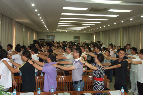 在培訓的最后,姜偉老師帶領大家?guī)ё哌^了一段心靈之旅,讓我們很好地審視了自己的過去,思考了自己的現狀,感懷了一路走來的人生。為了達到更好的效果,會場關閉了全部燈光,隨之耳邊傳來舒緩輕柔的音樂,然后姜偉老師用充滿磁性的聲音聲情并茂地向大家講述我們前進路上所遇到的“貴人”:給予我們生命的父母、傳授給我們知識的老師、為我們提供發(fā)展平臺和機遇的老板、給我們幫助和支持的同事……他生動的講述讓在場的很多人都流下了真誠感動的淚水!不僅僅是因為感動,而是很多人想起了自己的父母、家人,想起了自己做銷售一路走下來的艱辛和磨難!在日復一日、年復一年的重復工作中,大家的激情消失怡盡,但是面對我們頭發(fā)花白、老眼昏花的父母,面對他們充滿期待的眼神,再大的困難、再多的挫折,又能算得了什么呢?的確,很多時候,我們不僅僅為自己活著,而是為了父母兄弟、為了孩子、為了心中的信念而活著!做銷售難,做一名出色的銷售更是難上加難!拜訪難,簽單更難!達成目標難,超越目標更難!保持好心態(tài)難,一直保持著好心態(tài)更難。所以,回想起這段坎坷路,我們每個人的心里都有酸甜苦辣,但是,我們都在堅持,為什么?不正是為了實現心中的夢想嗎?可遇到困難的時候,碰到挫折的時候,我們是否還一直堅守著心中的夢想和責任?在分享環(huán)節(jié)中,有兩位同仁流著眼淚說:父母面朝黃土背朝天累死累活地干一年,可能并不能賺上多少錢,特別是家在農村的,趕上好年頭莊稼收成會好些,要是趕上壞年景,可能這一年就白干了!老父老母真的挺不容易的,如果我們能好好工作,可能會讓父母的生活過得好一點,為了我們頭發(fā)花白、含辛茹苦把我們辛苦拉扯大的父母,我們沒有什么理由不努力!是啊,我們很多同仁都出身于平凡的家庭,我們可能更懂得生活的艱辛,更能體諒到父母的不容易。為了父母,我們一定要微笑著面對生活的坎坷,為了父母,我們一定要好好工作!