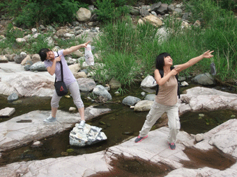 水光瀲滟晴方好,山色空蒙雨亦奇”。用此詩(shī)句來(lái)形容今日的彩石溪毫不為過,雨后的彩石溪,畫入水中秀,水在畫上流。溪中流水之下如彩石鋪就,溪底一條條石紋五彩紛呈,彩石溪因此而得名。彩石溪景色別致,雖不似“岱頂觀日出”壯麗,更不是什么名勝古跡,只是泰山奇景中一角,卻足以令人趨之若鶩,更有別樣的詩(shī)情畫意。彎彎曲曲的溪水像是被彩石染上了顏色,像是一條五彩斑斕的飄帶一直通往山頂。沿溪一路直上,十里山澗,波光瀲滟,奇特地質(zhì)地貌,猶如潑墨大寫意。身臨其中,讓人不由地贊嘆起大自然的鬼斧神工??茨俏宀拾邤痰木€條隨山勢(shì)或舒或展,聽那清澈的流水潺潺,那情那景仿佛置身于世外桃源。脫下鞋子,佇立水中,溪流溫順而清澈。美麗的彩石引得大家駐足欣賞,仔細(xì)看水中還會(huì)發(fā)現(xiàn)聞名遐邇的泰山赤鱗魚以及黑色的小蝌蚪,它們出沒于石隙水藻之間,身影靈巧輕盈,搖曳多姿,為大家的出游增添了很多的情趣。山中的空氣清新甘潤(rùn),忍不住來(lái)個(gè)深呼吸,頓覺心曠神怡,神清氣爽,每一個(gè)細(xì)胞說不出的舒暢,平日的瑣碎煩亂事情一掃全無(wú),大家的身心得到完全放松。
