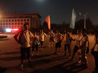 9月16日下午17:30,參加此次拉練的全體成員統(tǒng)一著裝,齊聚在生產(chǎn)基地會(huì)議室里參加了動(dòng)員大會(huì)。培訓(xùn)部經(jīng)理傅龍先生帶領(lǐng)大家進(jìn)行了定向,就拉練人員分組、行程規(guī)則、注意事項(xiàng)等進(jìn)行了詳盡細(xì)致的介紹。全體人員按照動(dòng)員要求分為三個(gè)小組,隨后,各小組人員用了約10分鐘的時(shí)間選隊(duì)長、起隊(duì)名、隊(duì)呼,畫隊(duì)旗。18:10,全體人員統(tǒng)一乘坐大巴車到達(dá)徒步的起點(diǎn)——山東財(cái)經(jīng)大學(xué)。18:30分,三個(gè)小組同時(shí)邁出了這次征程的第一步,拉練活動(dòng)正式開始。