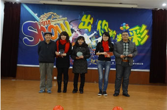 晚宴上,公司高層和與會員工共同舉杯,一起慶賀滿載收獲的2013年,一起歡迎充滿希望的2014年。同時也頒發(fā)了聯(lián)歡會的各個團體及個人獎項,“博學團隊獎”的桂冠由黃隊摘得;“精氣神兒團隊獎”則由紅隊獲得;“最佳設(shè)計團隊獎”和“游戲王團隊獎”由藍隊包攬。個人獎方面,“最上鏡模特獎”由綠隊的卜新春獲得,“最有紅毯范兒獎”由紅隊的張風爽獲得,“移動的百科全書稱號獎”則由綠隊的周海超獲得。所有獲獎人員在領(lǐng)取豐厚獎品、表達開心的同時,都不約而同地表達了對給予自己充分支持的、通力合作的團隊全體成員的感謝!