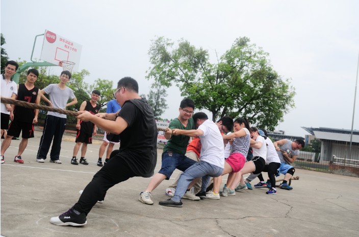 首先開始的是拔河比賽,富有節(jié)奏的吶喊聲、加油聲,充斥在田徑場(chǎng)上空,久久回蕩。尤其是在勝負(fù)難分的時(shí)刻,大家毫不退卻,咬緊牙關(guān),堅(jiān)持到底。賽場(chǎng)上的隊(duì)員個(gè)個(gè)斗志昂揚(yáng),用他們的汗水為我們講述了團(tuán)結(jié)的含義,他們頑強(qiáng)的毅力與拼搏的精神讓每一個(gè)人感動(dòng)?,F(xiàn)場(chǎng)拉拉隊(duì)的員工每個(gè)都是熱情高漲的樣子,吶喊助威給比賽增添了一抹亮色,每一聲吶喊都帶來一股力量!