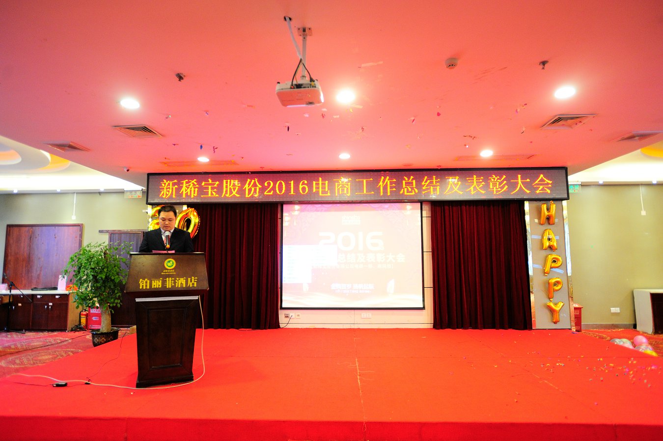 綠城南寧金雞賀歲,電商商網(wǎng)揚(yáng)帆起航。2017年1月13日,新稀寶股份2016年度電商及商網(wǎng)工作總結(jié)暨表彰大會在廣西南寧鉑麗菲酒店正式召開。電商事業(yè)部一部、商網(wǎng)部全體精英共計80余人參加了此次盛會,新稀寶股份有限公司副總經(jīng)理-鄭朝霞女士、高層經(jīng)理輪值主席-張秋峰先生、生產(chǎn)總監(jiān)-王猛先生、電商事業(yè)部副經(jīng)理-李建東先生、南寧分公司副經(jīng)理-陳文歡先生均出席了本次會議。