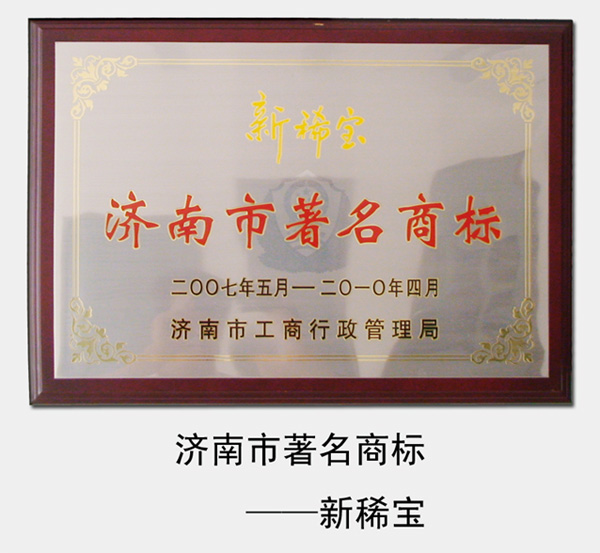 2007年-2013年,“新稀寶”被濟南市工商局評為“濟南市著名商標(biāo)”