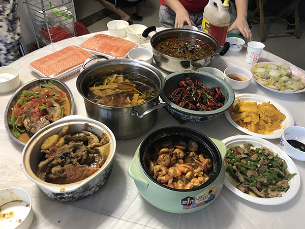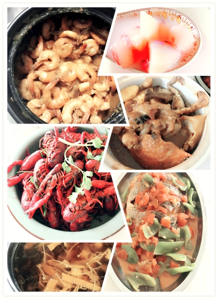 沒想到平時(shí)工作能力杠杠的同事們,做起菜來也絲毫不遜色。沒過多久菜已經(jīng)陸續(xù)上桌,有毛毛做的紅燒魚與水煮牛肉,米粒做的菜包釀、咸蛋炒南瓜;陶大神做的 佛跳墻、蟹黃煲、椰香蝦;潤(rùn)姐的燒鴨、西芹紅椒炒白果、涼拌木耳;寧寧的炒花甲螺;振宇做的青椒炒肉;芳芳的芒果西米露。一大桌菜色香味俱全、品種多樣, 飯前涼菜、家常炒菜、營(yíng)養(yǎng)豐盛的大菜以及飯后甜點(diǎn)應(yīng)有盡有。