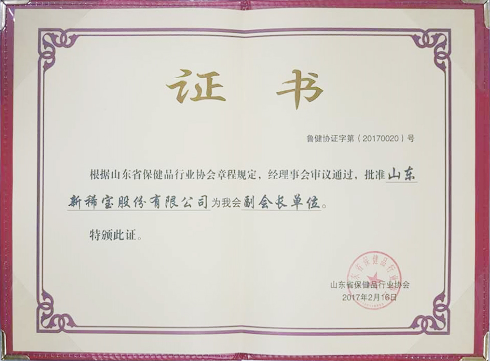 2017年,成為山東省保健品行業(yè)協(xié)會(huì)副會(huì)長(zhǎng)單位