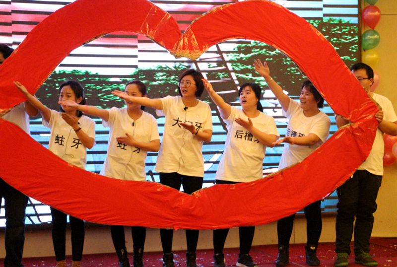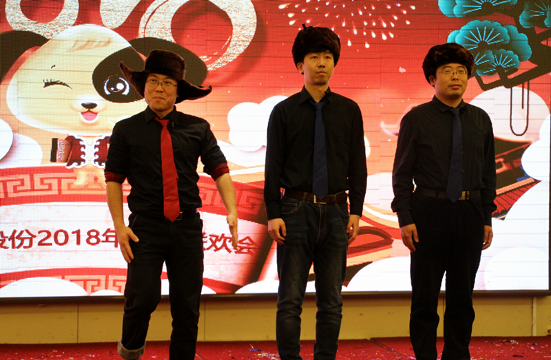 總結(jié)表彰大會結(jié)束后迎來了萬眾期待的新春聯(lián)歡會,后勤所有員工共分為四個代表隊,分別為財孕隊、相親相愛一家人隊、玉蘭隊和C哩C哩隊,四個代表隊為大家?guī)砹司实墓?jié)目。首先出場的是財孕隊的廣場舞《火了火了火》,他們用熱情之火燃爆全場;相親相愛一家人的交誼舞《愛的華爾茲》為大家?guī)砹瞬灰粯拥睦寺裉m隊的《大王叫你來巡山》活潑俏皮,C哩C哩隊的爵士舞《C哩C哩》引爆全場將晚會推向高潮。伴隨著歌曲《尊道貴德》,帶領大家感受道與德帶來的寧靜與莊重,小品《在那遙遠的地方》除了為大家?guī)須g笑外,也讓我們感受到愛與奉獻的可貴。隨后畫風一轉(zhuǎn),小型舞臺劇《喀秋莎》、《拔牙》形式新穎,幽默搞笑,為大家?guī)砹藙e樣的觀感體驗。除此之外,還有原創(chuàng)作品《三句半》緊扣大家的工作和公司的發(fā)展,讓我們在歡笑中回顧了這一年的歷程。后勤的女將們帶來的小品《女神和女漢子》,逗趣的表演、傳神的刻畫將整場晚會再次推向高潮;晚會在歌曲《365個祝?!分新湎箩∧唬钊嘶匚稛o窮。