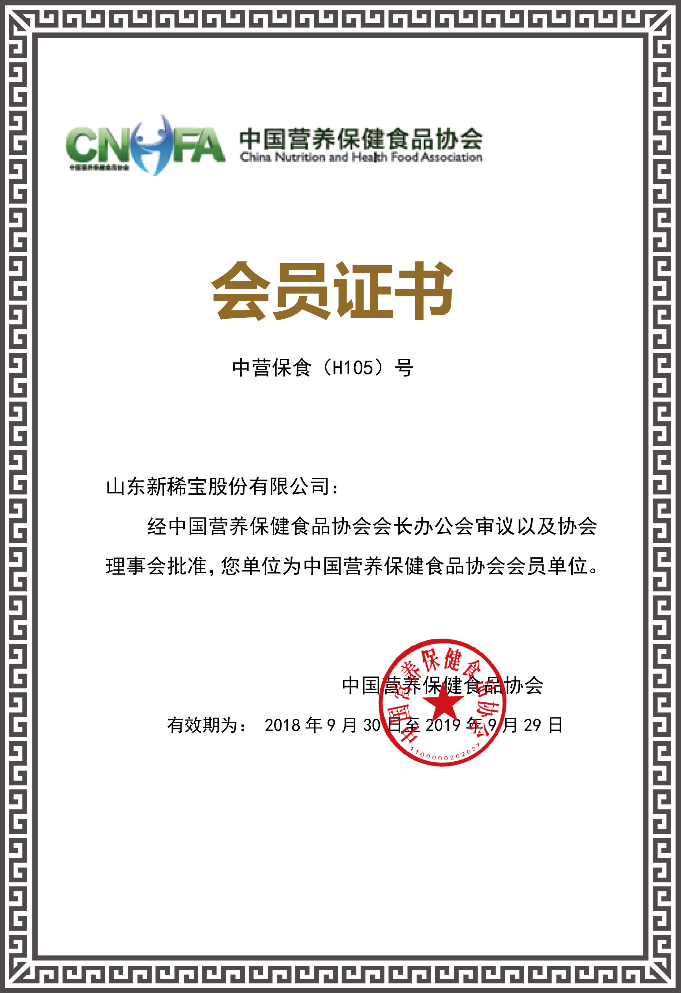 2018年,公司成為中國營養(yǎng)保健食品協(xié)會會員單位