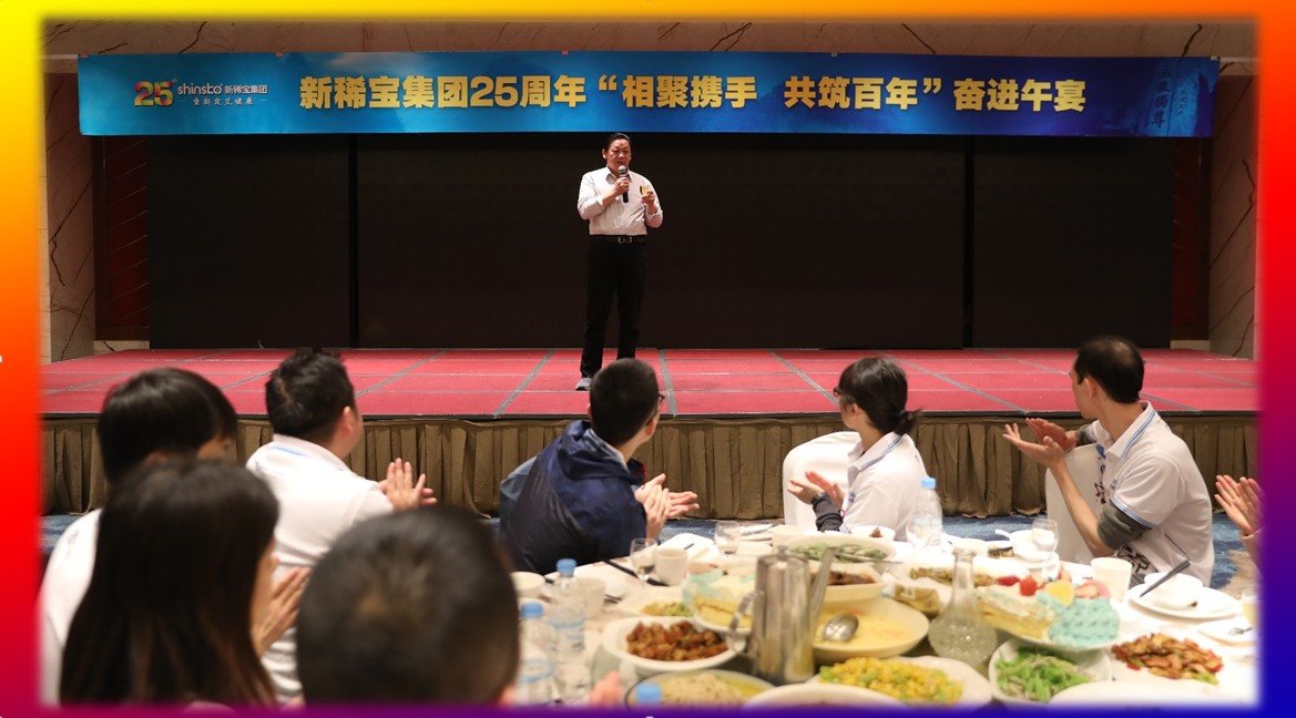二十五年櫛風(fēng)沐雨,二十五年春華秋實(shí)。集團(tuán)踏著時(shí)代的鼓點(diǎn),乘著改革的東風(fēng),一路走來,我們胸懷蒼茫大地,志達(dá)遼闊藍(lán)天,奮進(jìn)的征途永無盡頭。集團(tuán)董事長湯傳忠先生發(fā)表《偉大的時(shí)代 難得的機(jī)遇 共筑新稀寶的新未來》主旨演講,董事長從“偉大的時(shí)代”層面,為大家深層剖析了“大健康產(chǎn)業(yè)”的時(shí)代已經(jīng)到來,是“人類健康共同體 重新認(rèn)識(shí)大健康”難得機(jī)遇,我們必須緊跟時(shí)代“落后時(shí)代是最大的落后”。