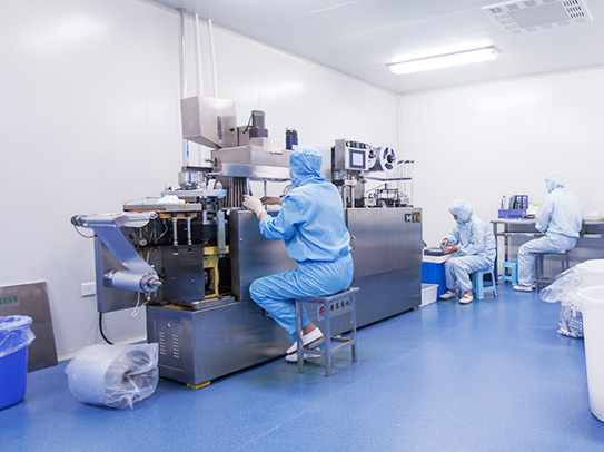 生產(chǎn)車間內(nèi)部空氣經(jīng)過初效、中效、高效三效過濾由空調(diào)送風(fēng)系統(tǒng)送入,凈化級別達(dá)十萬級標(biāo)準(zhǔn)。為確保生產(chǎn)區(qū)的高度潔凈,設(shè)有專門的人流物流通道,進(jìn)入車間的人員必須采取嚴(yán)格的凈化措施,換鞋、更衣、洗手、戴上口罩,穿上無纖維脫落、不吸附塵粒、防靜電、潔凈的工作服,通過緩沖區(qū),才能進(jìn)入潔凈生產(chǎn)區(qū)。